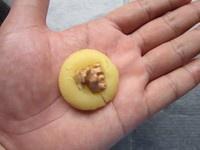 8、用大拇指壓扁餅干面團(tuán),并放入一顆核桃仁