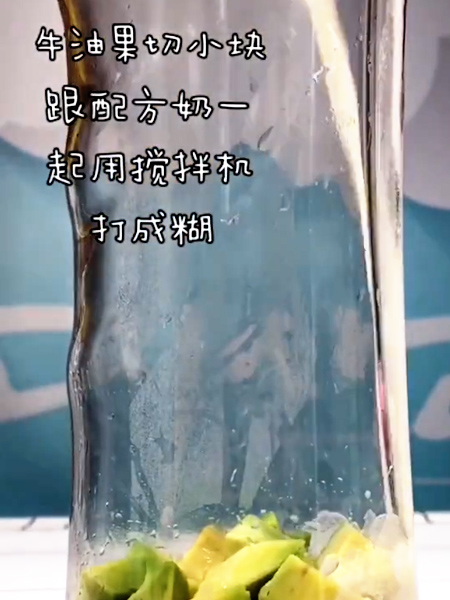 3、牛油果切小塊,跟配方奶一起用攪拌機(jī)打成糊。