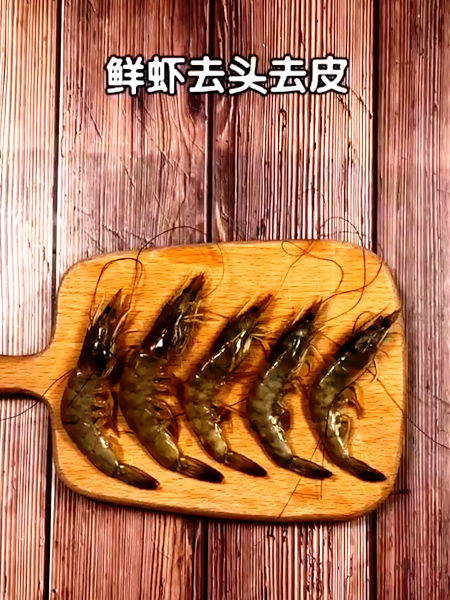 4、鮮蝦去頭去皮,去掉蝦線。