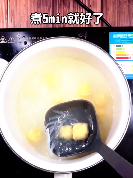 7、弄成蝦丸下入焯蘿卜的水中。
